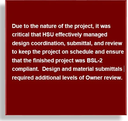 HSU was the prime contractor on this design-build project to renovate and relocate a Biosafety Level 2 (BSL-2) Lab.
