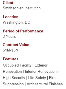 HSU was the prime contractor on this series of projects to upgrade the National Zoo, one of the most highly visited tourist attractions in the country. These projects involved mainly fire suppression system installations and utilities permitting, demolition, sitework, and installation of highly technical equipment.